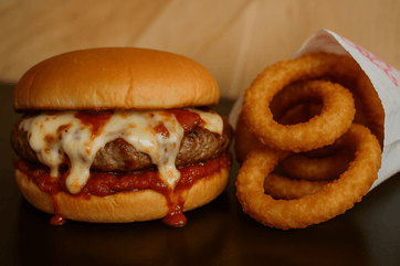 Murfs Italian Sausage Patty topped with mozzarella cheese & pizza sauce