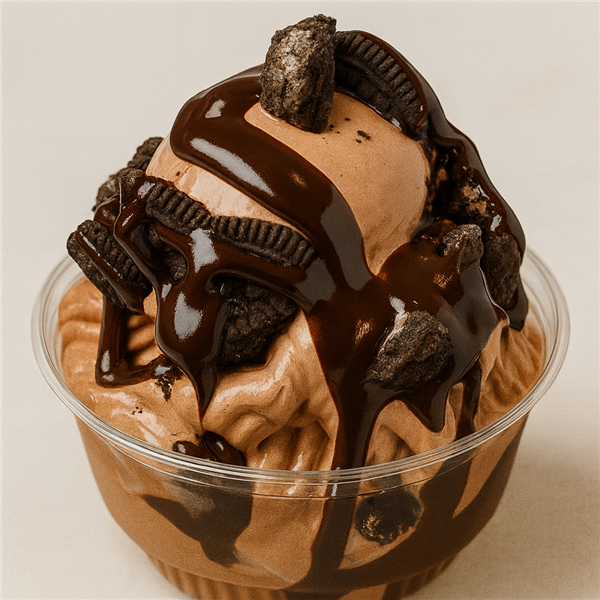 Chocolate frozen custard, smooth hot fudge, Oreo cookie pieces, brownie pieces