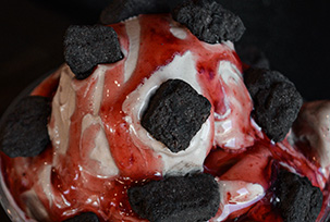 Extra dark chocolate frozen custard, smooth hot fudge, Oreo cookie pieces