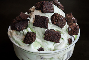 Cool mint frozen custard, fudge brownie pieces, smooth hot fudge